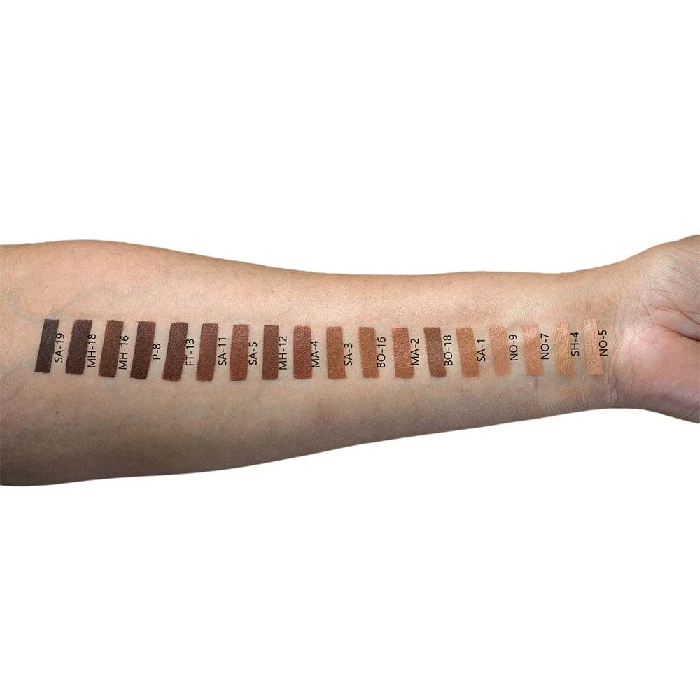 Your design options are limitless for bridal, runway, print, film, and HD Broadcast makeup. Layer a shade by itself or blend different shades for the perfect match and a natural, matte finish. Each diverse palette includes shades for fair, olive and brown complexions, ensuring precise color matching. Glides on and blends to a silky smooth, “no makeup” finish, the formula is distinctly sheer with a moist texture that allows complete coverage control. Buildable and long wearing!