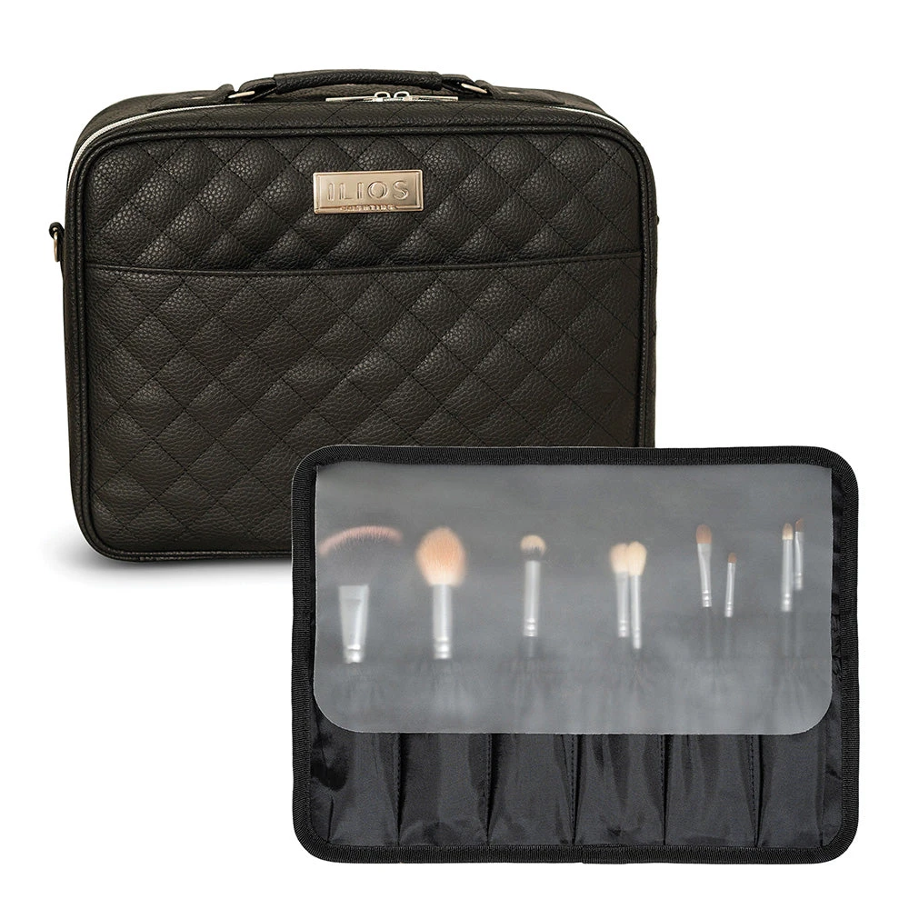 Enhance your makeup routine with this premium cosmetic case, perfectly balancing style and function. With careful attention to detail, this case lets you personalize the storage for your beauty products with adjustable dividers. The roomy brush holder can fit oversized brushes, liners, and pencils, ensuring effortless access to all your tools.