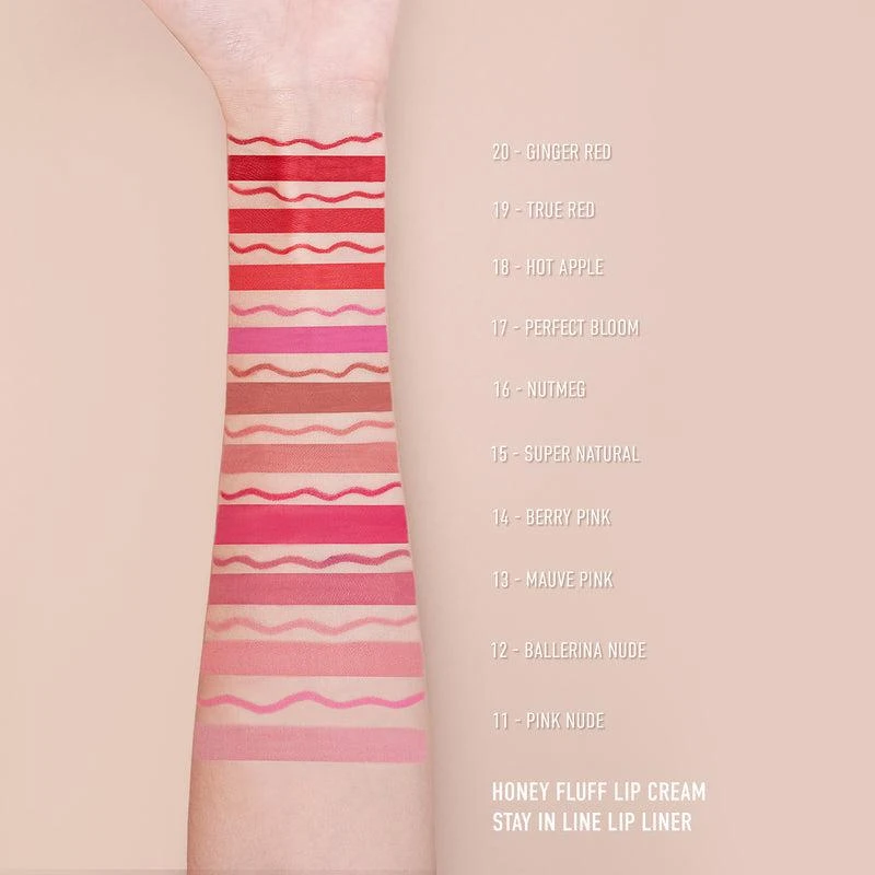 Honey Fluff is a super soft, whipped, matte lip cream that feels like air. Infused with Jojoba Seed Oil and Grape Seed Oil to help keep your lips nourished and soft, this super soft lip cream is highly pigmented and feels light on your lips and can be used on both lips and cheeks.