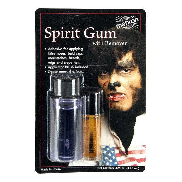 Transform your characters with Mehronโs Spirit Gum Adhesive, formulated to adhere to all your character enhancements, from prosthetics to bald caps and more. Experience quick drying spirit gum with all-day reliability. When the day is through, Mehronโs Spirit Gum Remover will break down the durable adhesive bond, gently removing sticky residue, and leaving your skin intact.