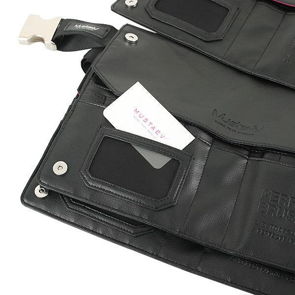 This professional brush belt stores not only brushes, but various products, such as pencils and also includes storage for business cards.