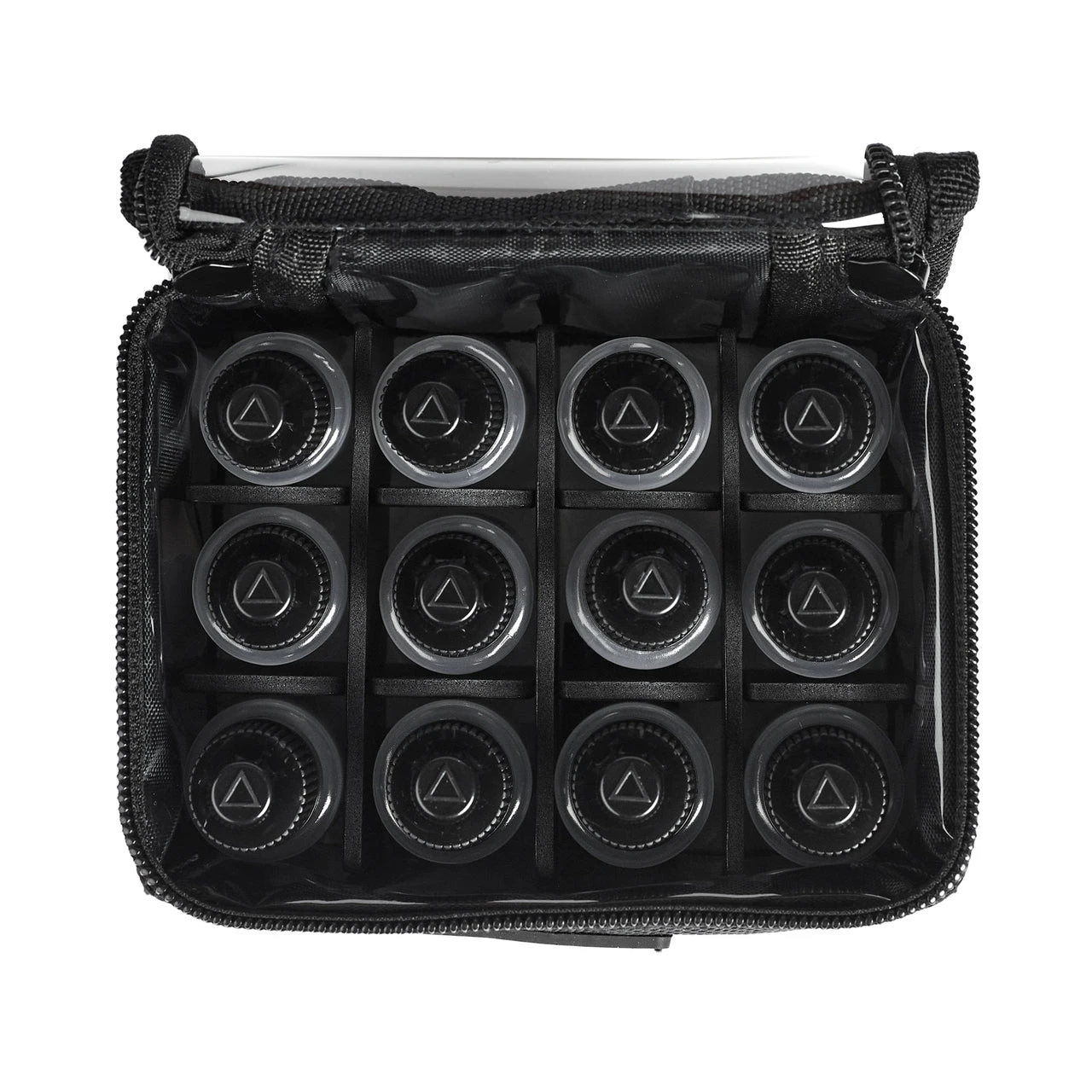 MY SMALL BOTTLE BAG contains 12 empty plastic bottles in a 20ml size. The bottles have child-proof caps to secure against leakage with a needle top nozzle that provides a precise application. They can be used for foundations, skincare, and even loose powders